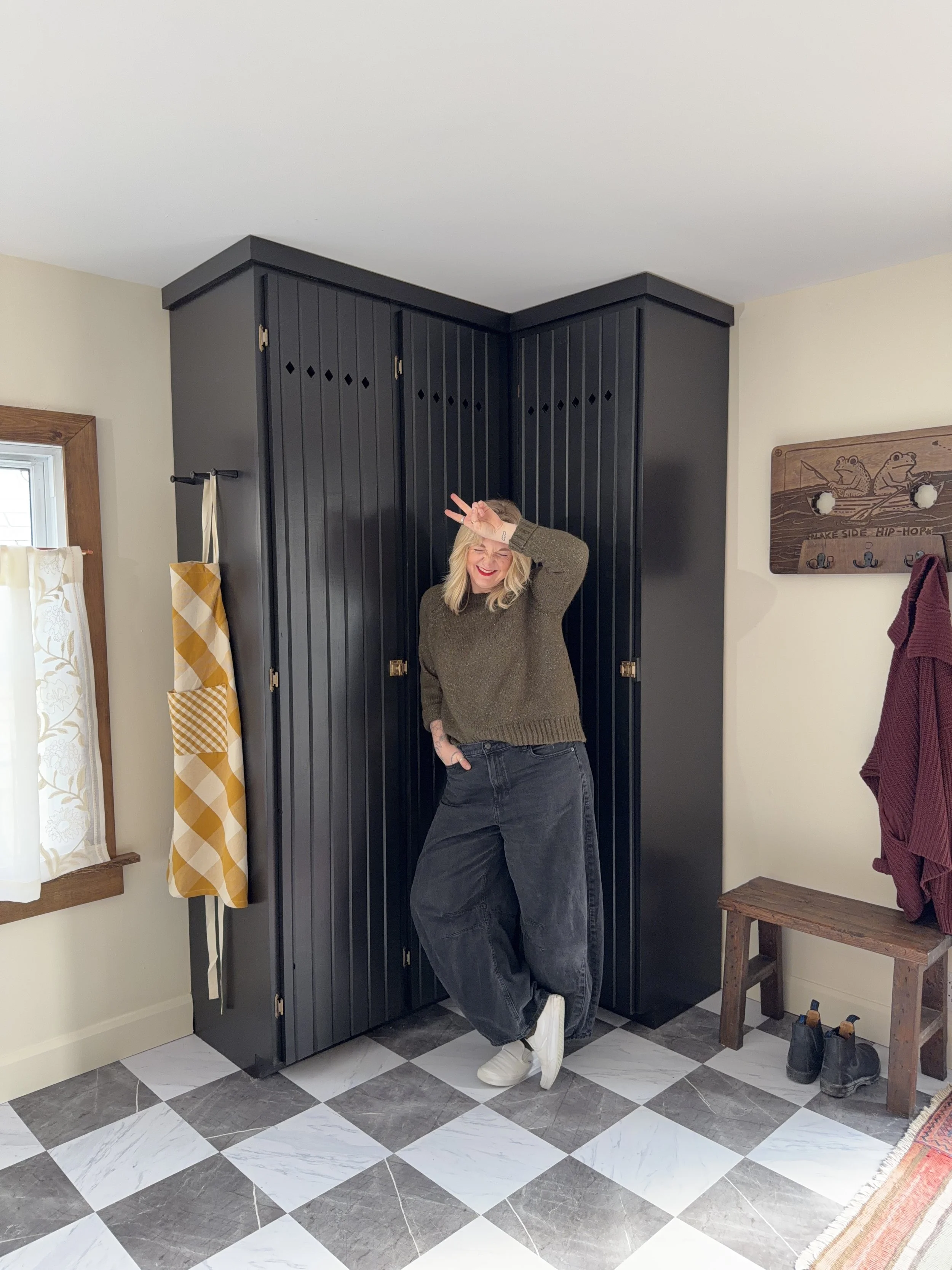 I’ve been working on my laundry/pantry combo (aka the Scullery) and it’s so close to being fully finished! This week, I added a fully custom, floor-to-ceiling built-in cabinet system designed to corral everything from toilet paper, paper towels, cleaning supplies, vacuums, and even some canning gear!